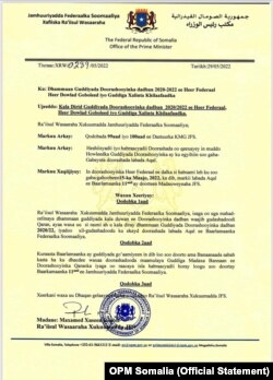 Halkan ka akhriso waraaqda ka soo baxday xafiiska ra'iisal wasaaraha