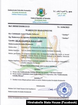 Madaxweynaha Hirshabeelle ayaa sheegay inuu ku bedelay C/llaahi Axmed Maalin.